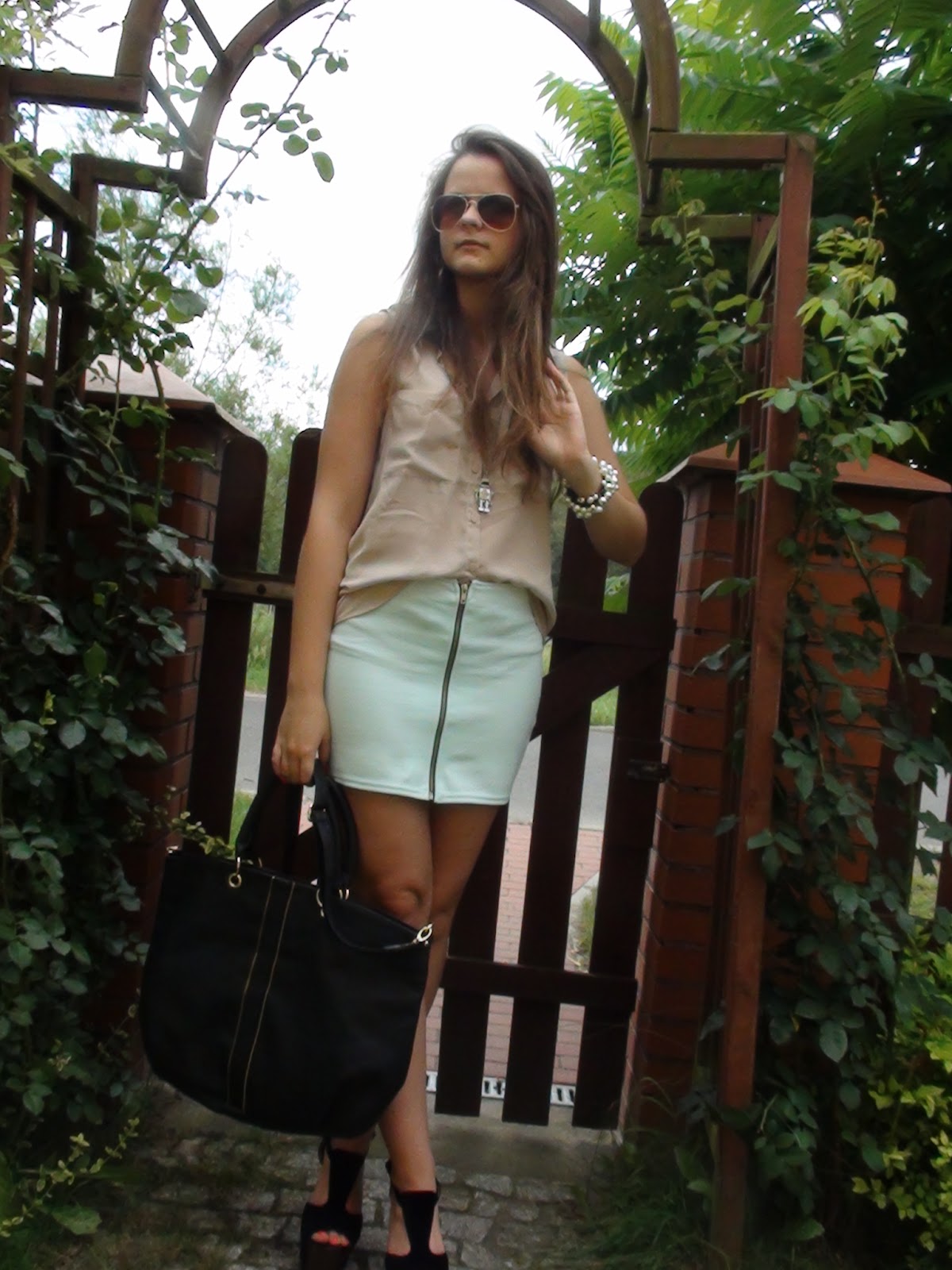 Dzisiaj mam dla Was zestaw z moją ulubioną miętową spódniczką, dwukolorową koszulą i ukochanymi sandałkami :) Podoba się? :D